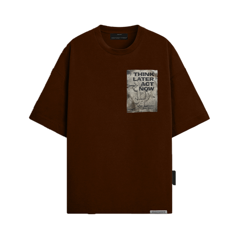 Bold and effortless — this oversized tee is built for those who move with instinct. Crafted from premium heavyweight cotton in a deep mocha brown shade, it features a statement chest patch with “THINK LATER, ACT NOW” — a reminder to stay raw, real, and in motion.