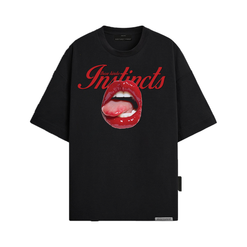 Make a statement without saying a word. The Instincts oversized tee blends bold energy with street-ready comfort. Featuring a high-impact red lips graphic and retro “Instincts” lettering, this piece captures raw emotion and attitude in every stitch.