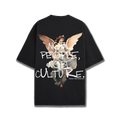 The Instinct First "Nobl Oversized T-shirt- Black " is a bold blend of classic streetwear style and timeless art. The standout feature is the captivating back graphic, featuring a Renaissance-inspired angel with the phrase "NOBL PEOPLE, NOB CULTURE" written in a graffiti-style font. This juxtaposition of classical and street art creates a unique and eye-catching design. The front of the shirt displays the Instinct First logo in a minimalist, centered design, maintaining a clean and understated aesthetic.