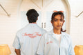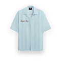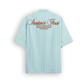 Crafted from lightweight, breathable fabric, this Summer Stripe Shirt in Sky color drapes with a relaxed fit that offers both comfort and style. The shirt features a refreshing stripes pattern, adding a touch of dynamic flair to its breezy vibe. Minimalist "Instinct First" embroidery on the front and back subtly enhances its charm, lending a hint of urban sophistication without overwhelming the relaxed aesthetic.