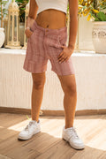 Our Salmon Pink Shorts is an oversized fit shorts, designed for a relaxed and modern silhouette. Made from high-quality linen, these shorts come in a soft pink hue with subtle stripes pattern all over it. These shorts sit comfortably right above the knees with an elastic waistband for an easy fit and a back pocket to keep your essentials.
