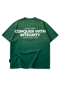 Built for those who lead with values and move with intent, the Conquer With Integrity tee reflects strength rooted in honesty. Finished in a deep forest green wash, this oversized silhouette carries a grounded, confident presence with a naturally worn-in texture.