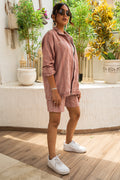 Style note: Pair the Salmon Jacket with our Salmon Shorts and a oversized t-shirt or tank top of your choice. Add your favourite pair of sneakers or slide on and a sunglass to complete your lounge look!