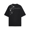 The "Anti-Romantic" T-shirt from Instinct First’s Valentine’s Day collection is a bold statement piece for those who challenge traditional love narratives. Crafted in sleek black, it features gothic-style typography spelling "anti-romantic" across the back, subtly blending into the fabric for a mysterious edge. Delicate white floral vines creep across the shoulder, symbolizing beauty growing through detachment. Designed in an oversized fit, this tshirt merges dark aesthetics with modern minimalism, making it perfect for those who embrace individuality and a rebellious take on romance.