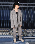 This exclusive one-off set features a timeless blue and beige gingham pattern that gives a premium look while still offering coziness. The oversized jacket is designed with full sleeves and button-up front, giving it a sophisticated edge while providing it a relaxed fit to allow ease of movement. Paired with this are the straight, relaxed fit pants to complete the refined look.