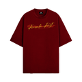 Command the track and the street with the Tifosi T-shirt. This deep maroon tee is crafted from a comfortable, high-quality cotton blend. The back features a dynamic, detailed graphic of an F1 car's front wing, highlighting the precision and power of the sport. A powerful quote, "There are no second thoughts in being the best," is elegantly scripted alongside the design, embodying the relentless drive to win. This shirt is for those who are always at the front of the pack.